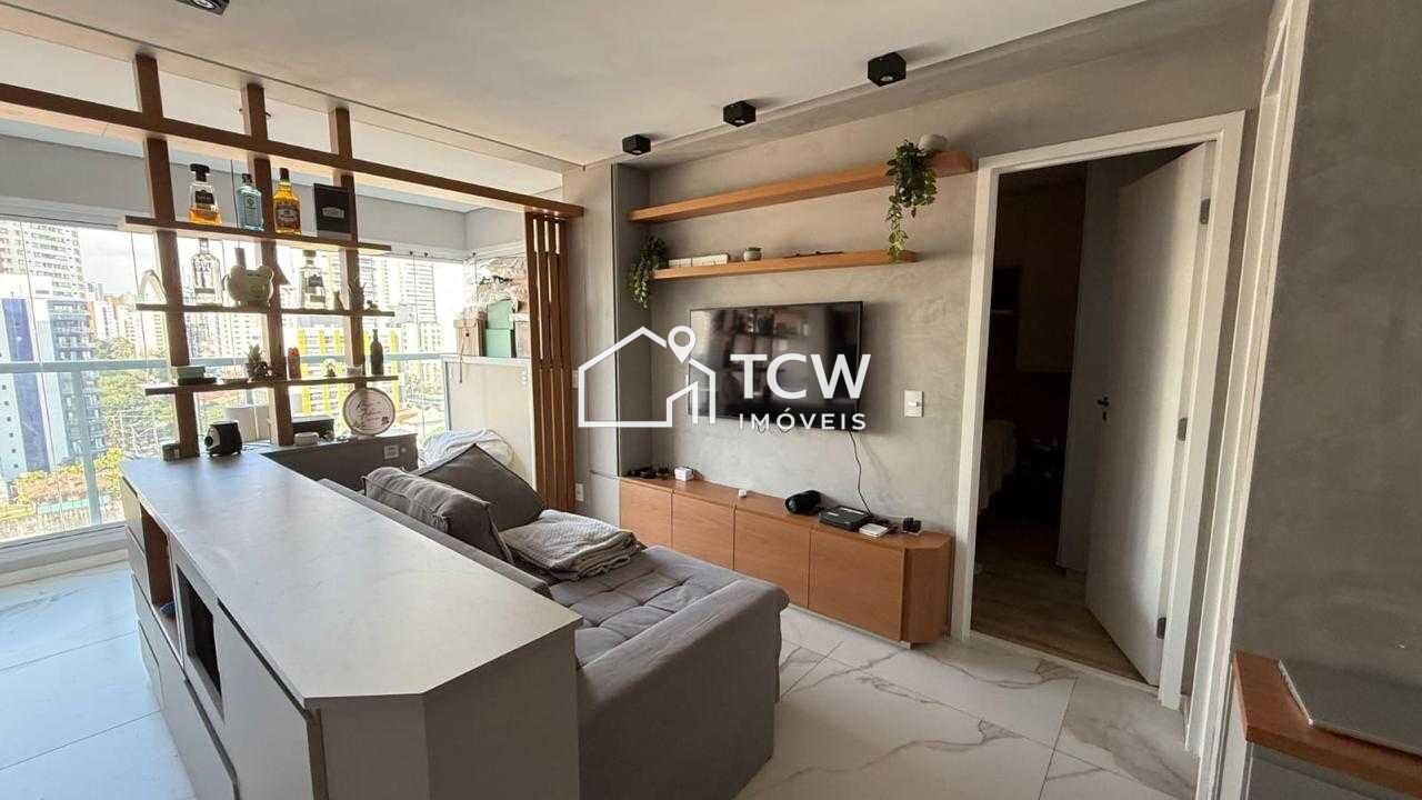Lindo apartamento de 41m²com Elegância e Conforto em Localização Privilegiada, bem distribuídos, com espaços cuidadosamente planejados para o máximo de conforto e funcionalidade. 1 suíte completa, com armários, cabeceira, cama de casal com baú e banheiro com gabinete planejado, box, espelhos e chuveiro, Lavabo moderno, Cozinha planejada com balcão e ilha, equipada com eletrodomésticos modernos, Varanda charmosa com armários planejados e máquina de lavar e secar Samsung, Sala aconchegante, com rack, prateleira suspensa e espaço ideal para relaxar ou socializar , 1 vaga de garagem, Vista livre e espetacular para o Parque Juca Mulato, com direito a um pôr do sol encantador!